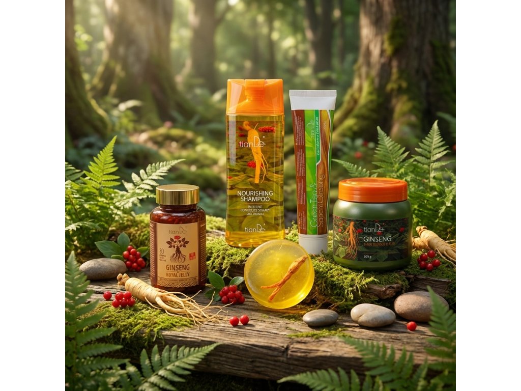 Keď telo aj vlasy strácajú energiu, potrebujú viac než len kozmetiku. Tento balíček stavia na sile ženšenu – tradičnej rastliny vitality – a prepája starostlivosť o vlasy, telo, ústnu dutinu aj vnútornú rovnováhu. Výsledkom je ucelený rituál obnovy, ktorý pôsobí zvonku aj zvnútra, v duchu TianDe.