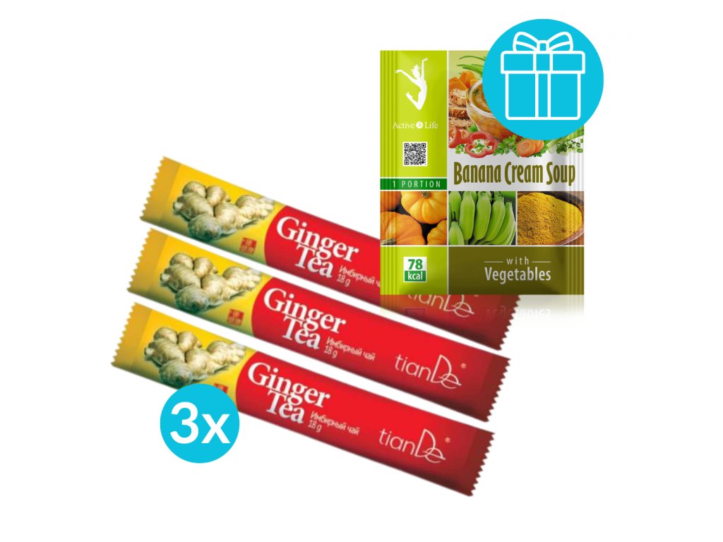 AKCIA 09. - 10. 3x Zázvorový nápoj 1ks x 18g a ako DARČEK získate Krémová banánová polievka so zeleninou, 25g_3.9b
