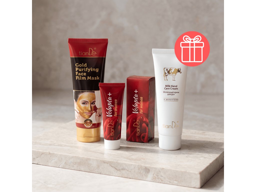 ✅ Všestrannosť: Stará sa o pleť (Zlatá maska), o telo (Mliečny krém) aj o vnútornú pohodu (Volupta+).