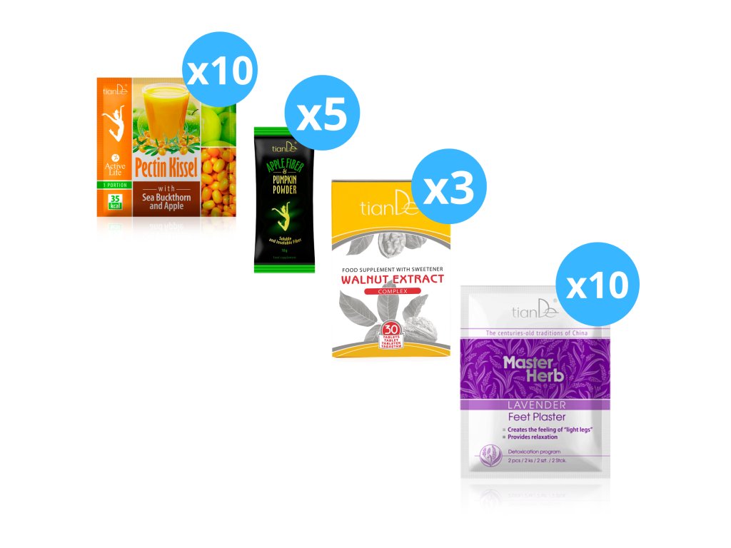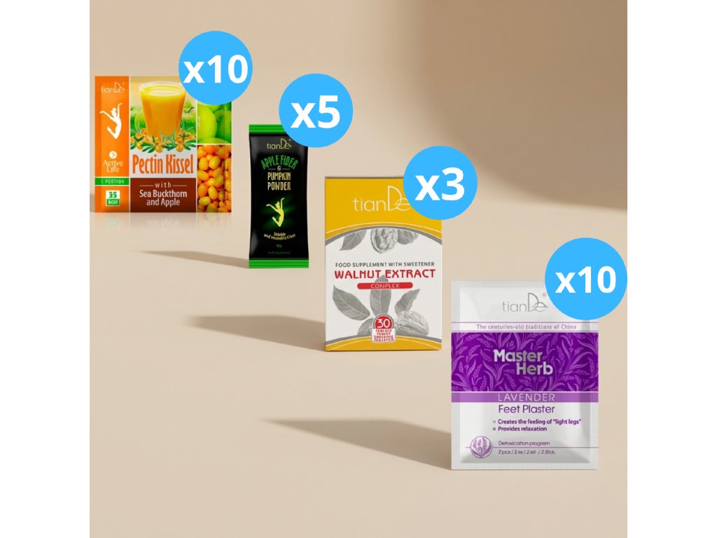 Tento balíček predstavuje komplexnejší detoxikačný program, ktorý okrem očisty čriev podporuje aj prirodzené detoxikačné procesy organizmu a regeneráciu počas spánku. Program kombinuje vnútornú očistu organizmu s podporou lymfatického systému pomocou detoxikačných náplastí.