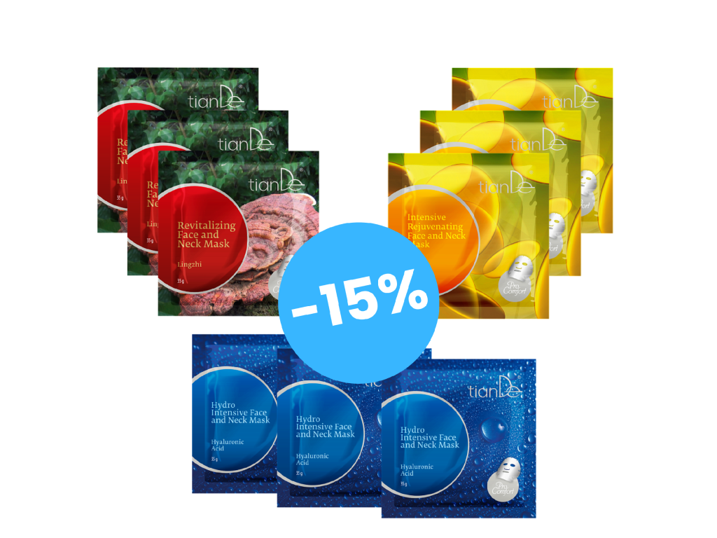 Omladzujúca maska Q10 — túto masku použite vtedy, keď chcete viditeľný efekt v boji proti vráskam. Koenzým Q10 je jedným z najsilnejších prírodných antioxidantov — dodáva bunkám energiu pre neustálu obnovu a spomaľuje procesy, ktoré stoja za vznikom vrások. Maska redukuje jemné linky, zlepšuje napätie pleti a vyhladzuje šupinky. Pre zrelú pleť sa odporúča 10-dňová intenzívna kúra — efekt sa s každým ďalším použitím prehlbuje.