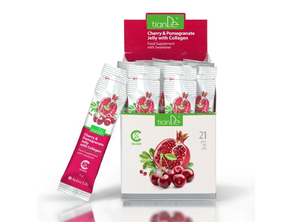 Kolagén je bielkovina, ktorá je základom spojivového tkaniva celého organizmu, a jeho množstvo sa s vekom nenávratne znižuje. Organizme je nevyhnutné ho dodávať zvonku. Teraz ho ľahko a pohodlne môžete doplniť pomocou kolagénu s višňovou a granátovou šťavou od TianDe.