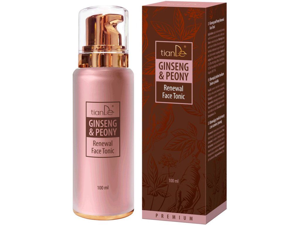 Obnovujúce pleťové tonikum Ženšen a pivonka je účinný komplex aktívnych zložiek pre regeneráciu kožných buniek, zlepšenie tonusu a hydratáciu. Olej zo semien ženšenu, extrakt zo ženšenu a saponíny zo ženšenu, extrakt pivonky, krtičníka a korkovníka amurského, upokojujúci fytokomplex na báze portulaky (šruchy) a antioxidantu, polysacharidový komplex na báze fukózy, niacínamid, betaín a trehalóza... Prípravok nielen dokonale završuje proces čistenia – tonikum pleť výborne upokojuje, vyhladzuje vrásky a dodáva jej mimoriadnu hebkosť a pružnosť.
