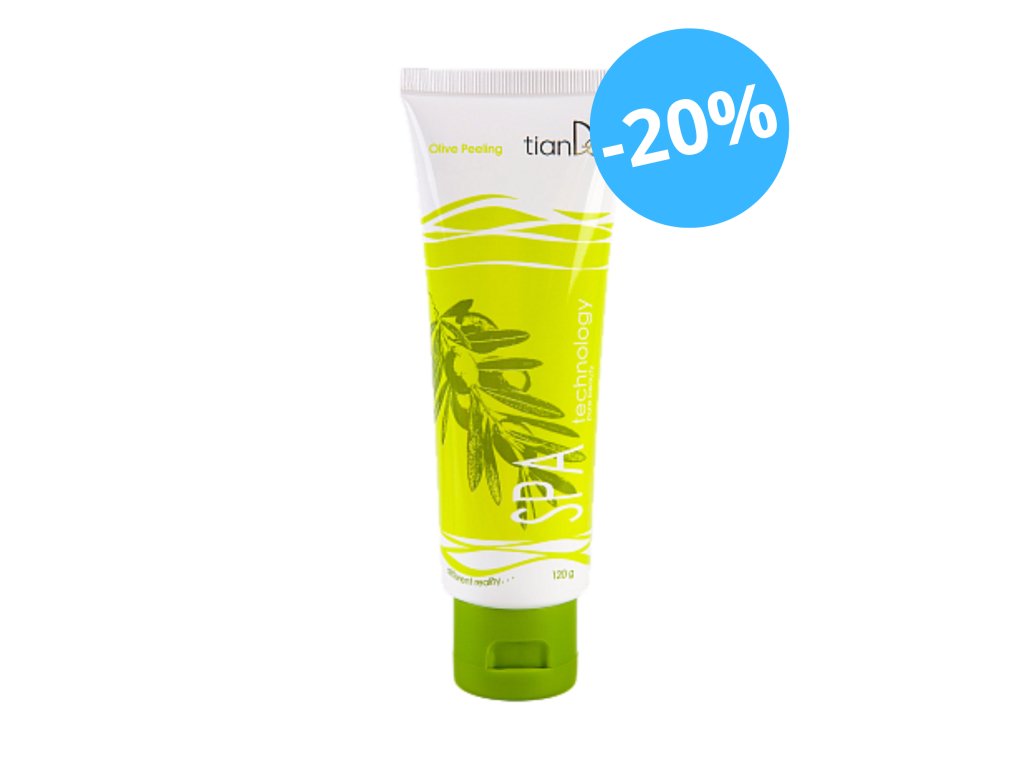 Peeling - exfoliant s olejom z olivových plodov a obsahom kolagénu a AHA kyselín aktivuje prirodzené mechanizmi hydratácie pokožky. Peeling zlepšuje farbu pleti a zosvetluje pigmentové škvrny, zmatňuje pleť a vracia jej pružnosť. Zvyšuje syntézu kolagénu, elastínu a kyseliny hyaluronovej.