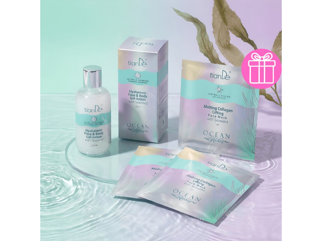 VALENTÍNSKA AKCIA Morská starostlivosť (Hyalurónový gél–lotion na tvár a telo s morskými riasami + 2x Kolagenová lifting pleťová maska s morskými riasami a ako DARČEK dostanete Kolagenová lifting pleťová maska s morskými riasami_14.1b